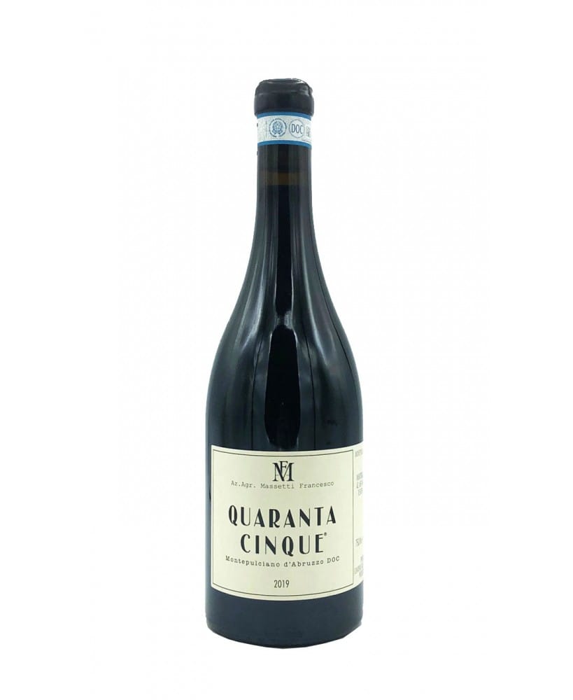 Massetti QuarantaCinque è un Montepulciano d’Abruzzo DOC corposo e intenso, frutto di una selezione accurata delle uve e di una vinificazione attenta. La maturazione in acciaio esalta le caratteristiche del vitigno. La sua struttura lo rende un compagno ideale per cene importanti, capace di evolvere nel tempo e regalare sensazioni sempre nuove.